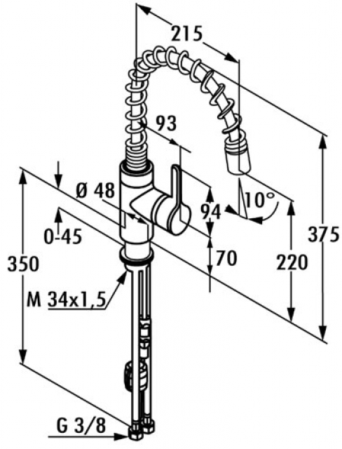 Einhebelmischer mit schwenk-/herausziehbarem Auslauf, seitlichem Hebel und Keramikkartusche