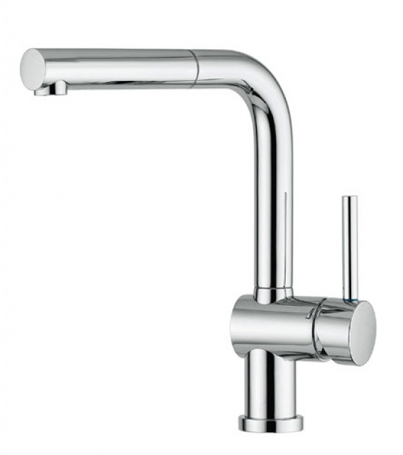 Einhebelmischer mit schwenk-/herausziehbarem Auslauf, seitlichem Hebel und Keramikkartusche