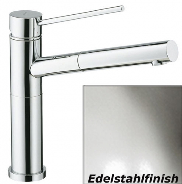 Systemceram KeraDomo TREND Einhebelmischer mit Schlauchbrause, Hochdruck, Edelstahlfinish