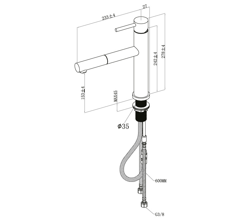 • Hochdruck Schlauchbrause. integriert, herausziehbar