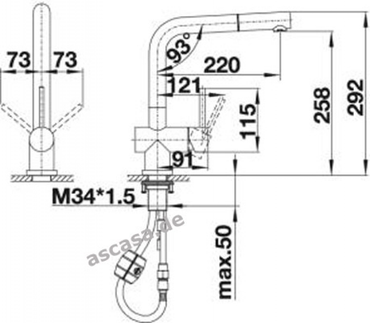 Blancolomis-S Edelstahl gebürstet, Hochdruck, Schlauchbrause, 518716