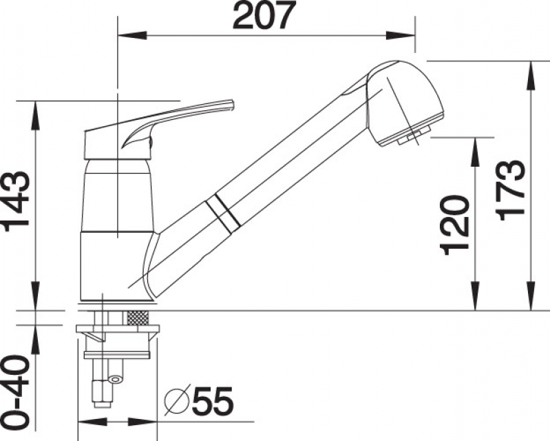 Schlauchbrause / Zugauslauf, Hochdruck
