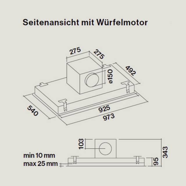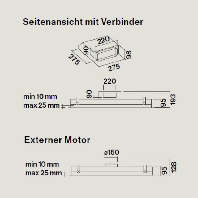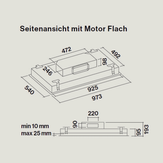- Betriebsart: Abluft (Umluft mit Sonderzubehör)
