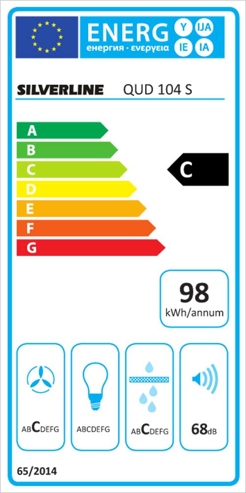 Silverline Quadra QUD 104 S Edelstahl/Schwarzglas Deckenhaube. Mit 5 Jahren Garantie!products_warranty_conditions