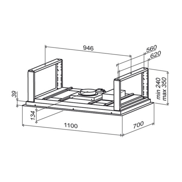 • vorgesehen für Betrieb mit externem Motor (kostenpflichtiges Sonderzubehör). Somit Auslieferung der Haube ohne Motor