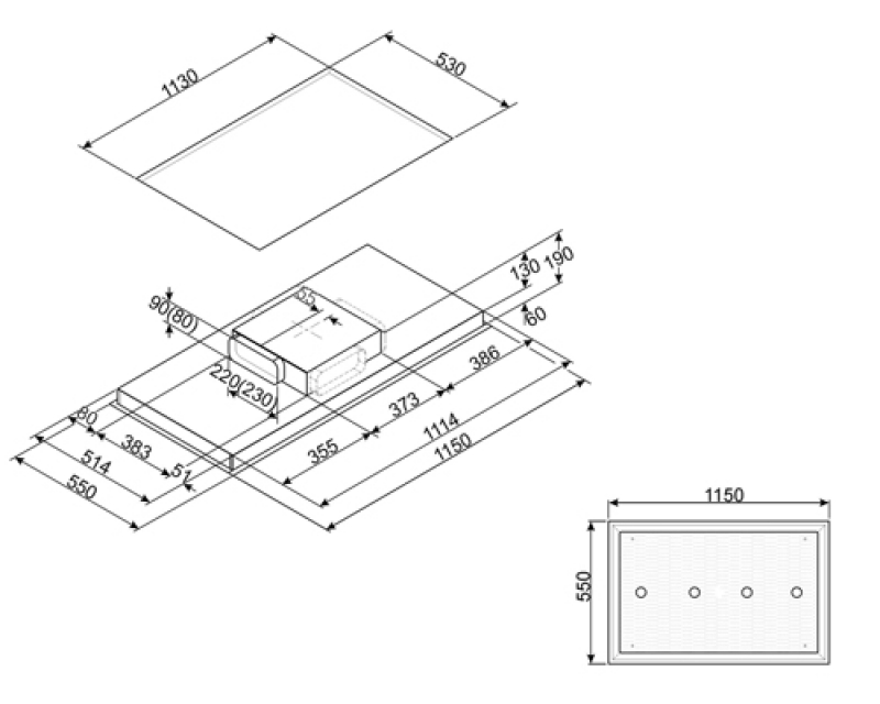 Smeg KSC 120B Einbaudeckenlüfter, Weissglas mattiert, Randabsaugung