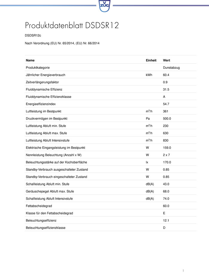 - Schallleistung Abluft Intensivstufe: 74.0 dB(A)