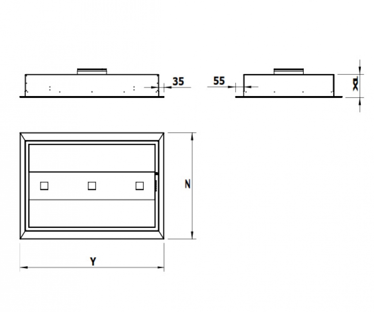 • H (X1) x B (Y) x T (Z): 153 (bei Abgang nach oben) – 253 (Abgang seitlich, vorne oder hinten) x 980 x 725 mm
