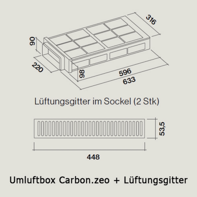 Der Filter CARBON.ZEO und ist neben dem Einsatz im Küchensockel auch für Deckenlüfter, Wand- und Inselhauben aus der E.ion Serie sowie für die neuen Flachlüfter lieferbar. CARBON.ZEO steht für die Kombination aus Aktivkohle und Zeolith. Letzteres ist ein Mineral mit hoher Mikroporosität.