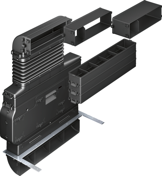• 4 Höhenadapter (50mm) für Korpushöhen von 675 - 900mm - 90° Umlenkstück mit Luftauslassöffnung (optional auch 180° drehbar)