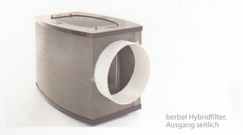 Der berbel Hybrid-Filter kann bei Umluft zur Leistungssteigerung des Umluftbetriebs eingesetzt werden. Bei Abluftbetrieb wirkt er als Überdruckventil, indem die Haube bei reduzierten Abluftwegen (max. 25 mm Differenz) so viel Luft in den Abluftweg bläst, bis die entstehenden Widerstände den Luftstrom abbremsen. Die übrige, sich aufstauende Luft gelangt durch den Hybridfilter gereinigt in den Raum zurück, wie bei der normalen berbel Umlufttechnik.
