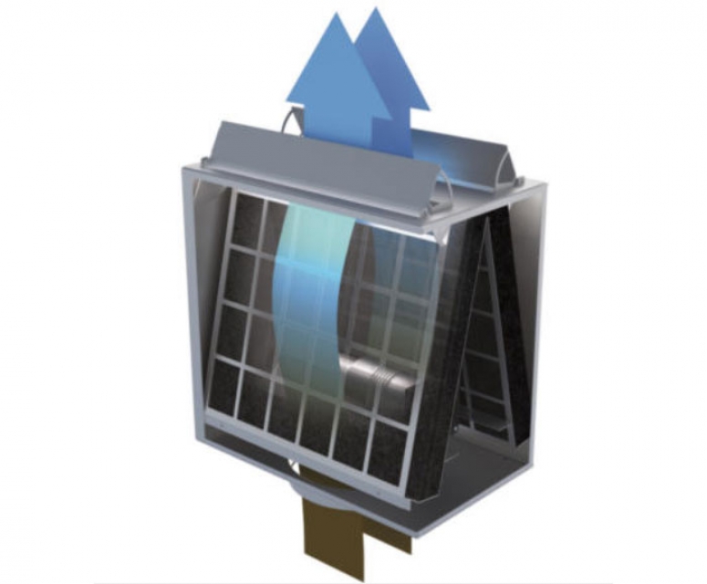 Im Normalbetrieb werden die Filtermatten durchströmt und nehmen die Geruchsstoffe auf. Die Geruchsbindung beträgt dabei 97 %.