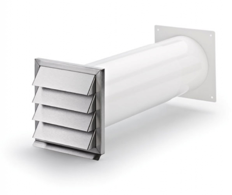 - Mauerkasten mit Edelstahl-Außenjalousie und Rückstauklappe und Teleskoprohr