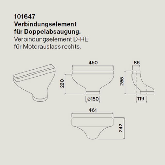 Falmec Verbindungselement, Doppelabsaugung rechts, 101647