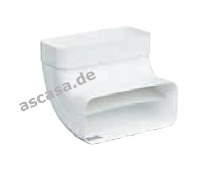 2 Bögen (z. B. 90° horizontal mit 90° vertikal) benötigen zur Verbindung ein Stück Flachkanal Rohr, welches sich durch Zuschneiden auf die gewünschte Länge kürzen lässt