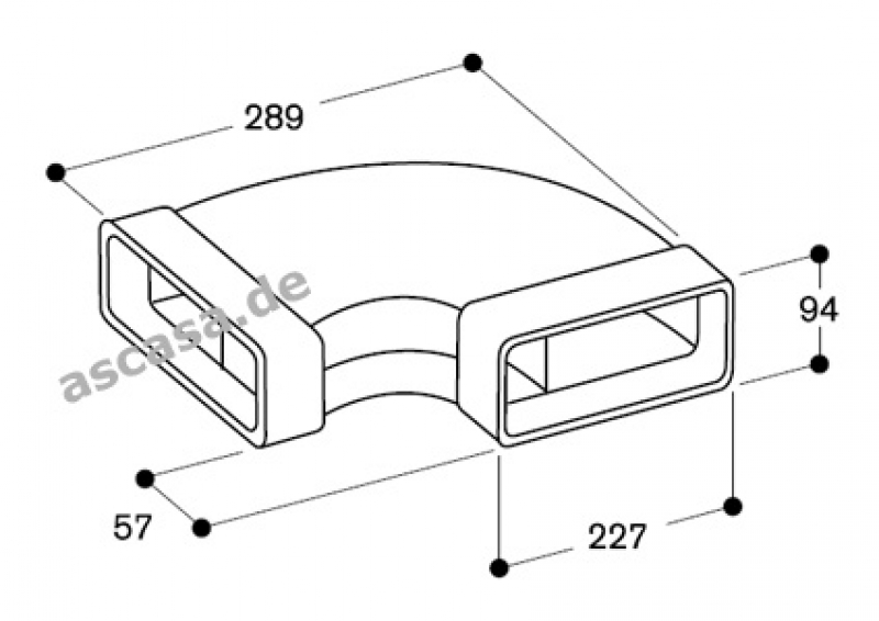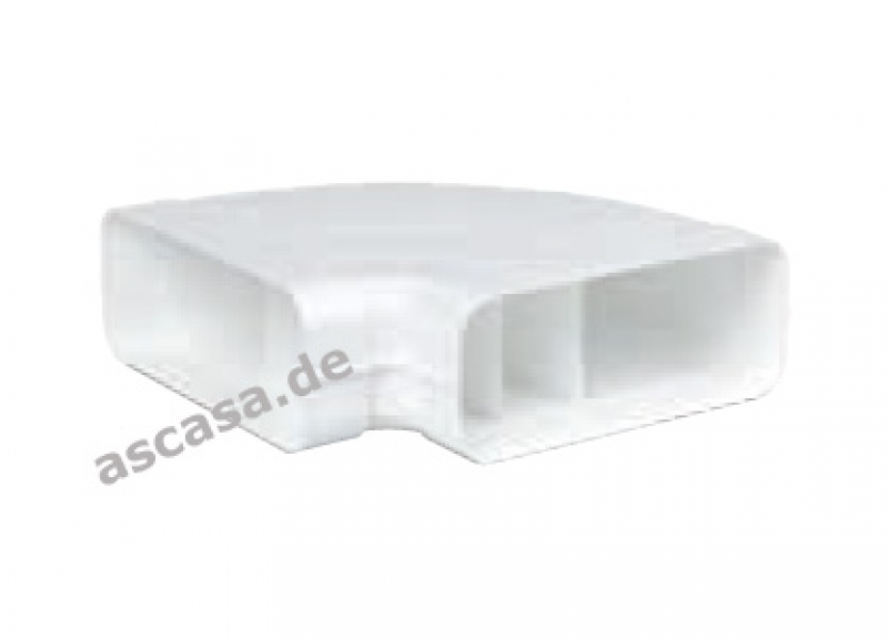2 Bögen (z. B. 90° horizontal mit 90° vertikal) benötigen zur Verbindung ein Stück Flachkanal Rohr, welches sich durch Zuschneiden auf die gewünschte Länge kürzen lässt