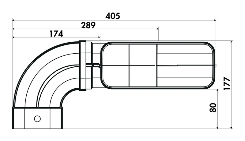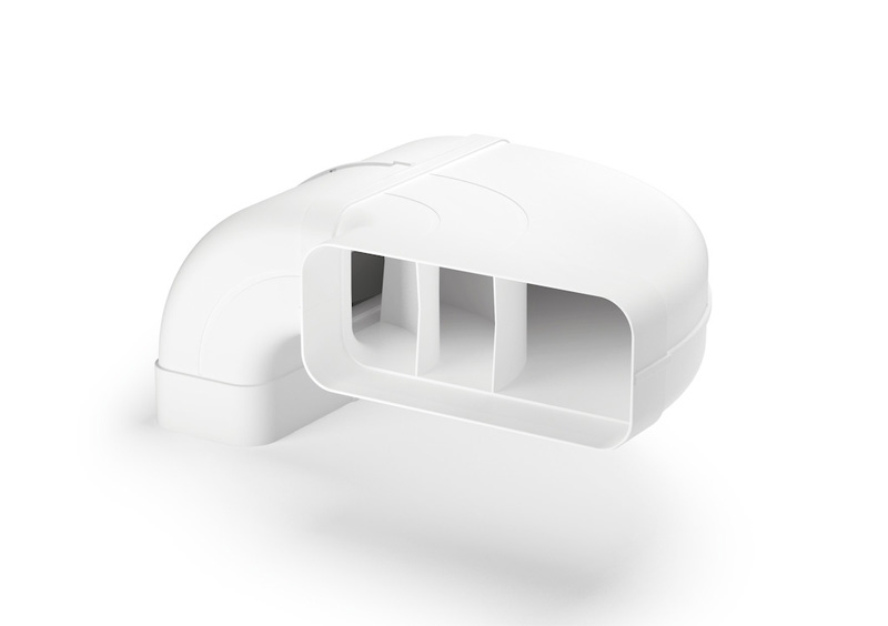 Das Rohrset erlaubt eine platzsparende Anordnung der Abluftrohre bei Dunstabzugshauben mit Downdraft- bzw. Muldenlüftung