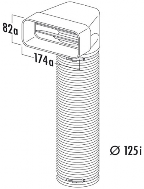 - Umlenkstück 90° mit Luftleitkörper, Flexschlauch und 2 Schlauchklemmen