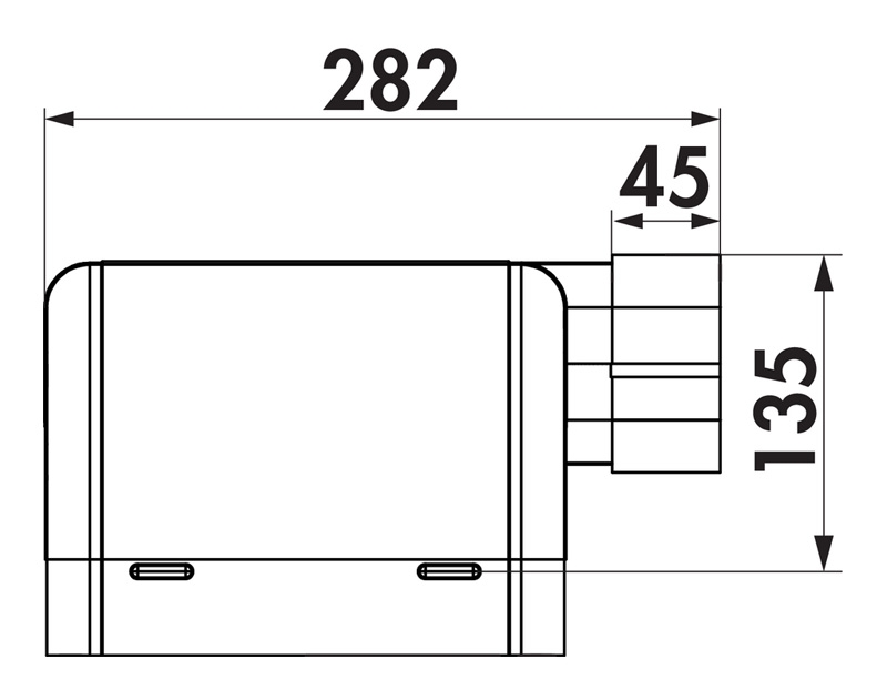 Anschlussmaß (222 x 89 mm) für direkten Anschluss an das Abzugsystem