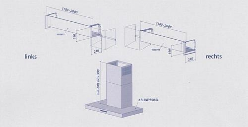 Die berbel Kamine mit seitlichem Ausgang bieten die Möglichkeit, jede berbel Wand- oder Kopffreihaube an spezielle Planungssituationen anzupassen. Mit den verschiedenen Komplettpaketen lassen sich bis zu 2 m lange seitliche Abluftausgänge realisieren. Durch Verwendung des gleichen Materials passen die Oberflächen perfekt zu den berbel Abzugshauben.