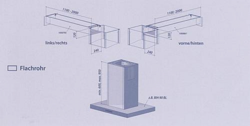 berbel seitlicher Ausgang für Flachrohr im Komplettpaket bis 500 mm, Ausgang vorne oder hinten, 1001421