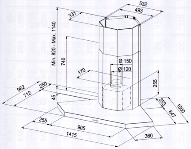 Durchmesser Abluftstutzen in mm: 150 - 120