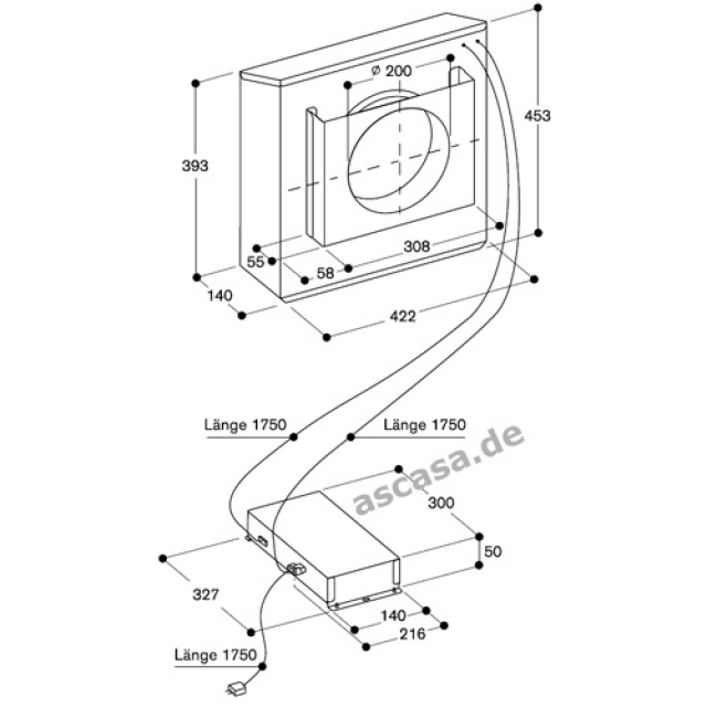 Rohranschlüsse Ansaugseite: 1 x NW 200 rund
