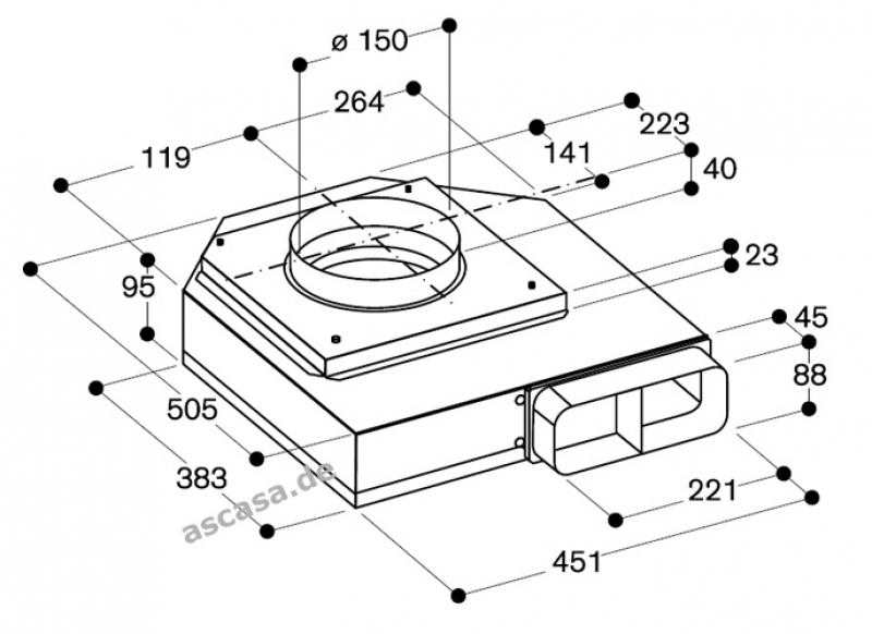 Rohranschluss Ausblasseite: 1 x NW 150 Flachkanal