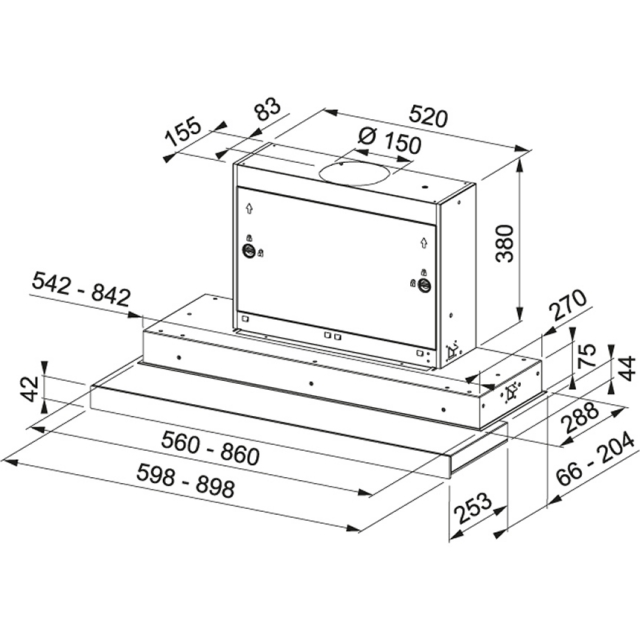 Franke Mythos, Flachschirmhaube, schwarze Bedienblende, Edelstahlgehäuse, 60 cm, 110.0456.717