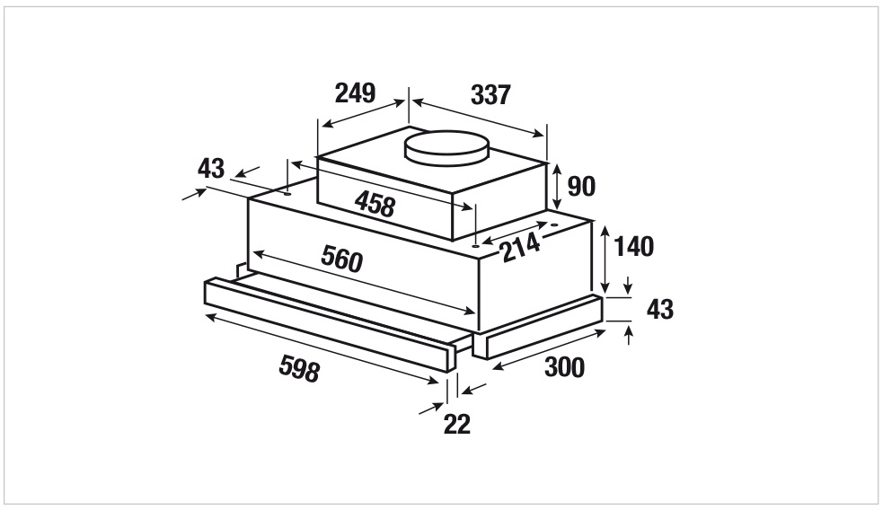 • Ausziehbares Flachpaneel zur Vergrößerung der Wrasenaufnahmefläche