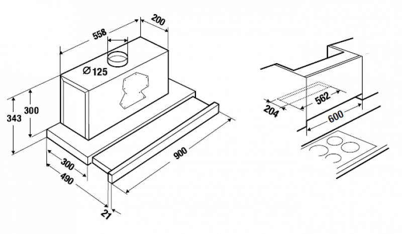 Mindestabstand über Elektro-Kochstellen (mm): 600