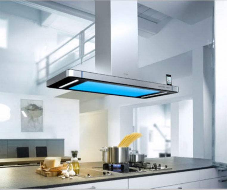 Der durch die zentrale Schlitzabsaugung in der Mitte eventuell nicht ganz abgefangene Wrasen wird spätestens am Rand über Eck durch die zwischen den verwendeten Elementen (Glas, Edelstahl) entstehende Randeckabsaugung abgesaugt.
