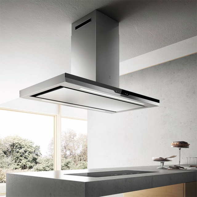 Elica Meteorite Island IX/A/120 Insel Haube, Edelstahl und schwarzes Glas, 120 cm, Abluft/Umluftbetrieb, touch-control-Bedienung, Revolutionfilter optional, LED-Beleuchtung, Energieeffizienzklasse A, PRF012097 1A