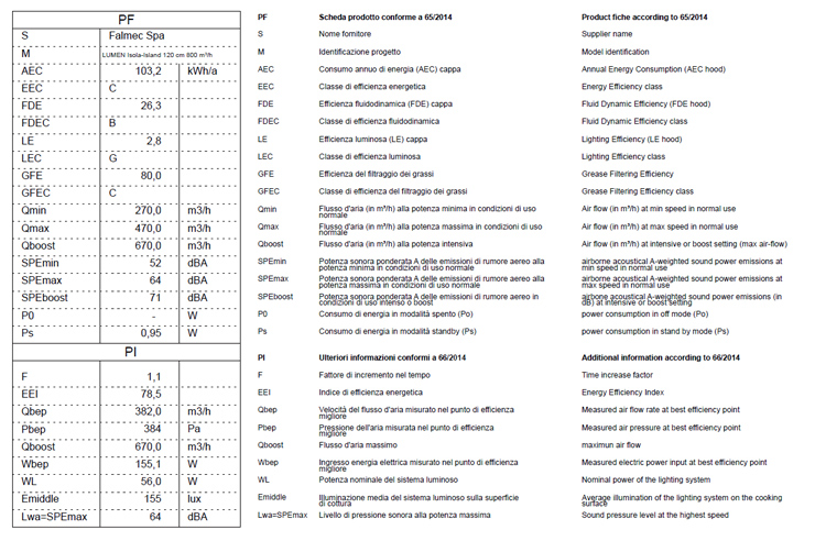 Falmec bietet eine breite Palette von Motoren an, je nach Notwendigkeit. Neben dem Aspekt der Effizienz, wird auch spezielles Augenmerk auf Lärmminderung gelegt, um so einen höheren Komfort in der Küche zu erreichen.