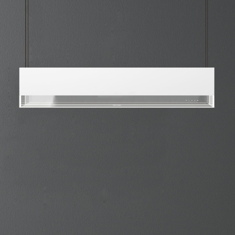 RandabsaugungDer aufsteigende Dunst wird an den Außenkanten der Haubenkörperkonstruktion abgesaugt und zum dahinter liegenden Fettfilter geleitet. Bedingt durch die hohe Strömungsgeschwindigkeit am Rand der Dunsthaube kann selbst bei kleineren Motorstufen nahezu kein Kochdunst in die Küche entweichen. Es entstehen keine Turbulenzen, der Mitnahmeeffekt ist hoch und Abpralleffekte spielen keine Rolle. Die Luft strömt nicht erst in die Küche, sondern direkt in die Dunsthaube. Die aus der Randabsaugung resultierende Effizienzsteigerung ermöglicht den Betrieb in niedrigeren Leistungsstufen, mit weniger Energieverbrauch und geringerer Geräuschentwicklung.