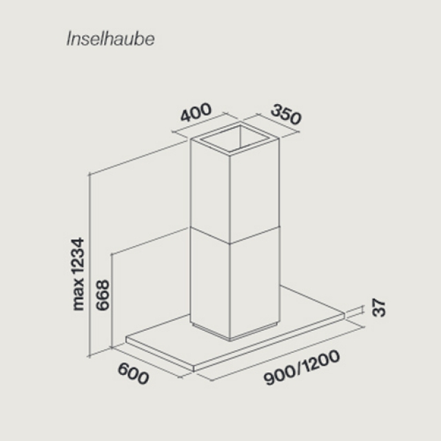 - Installation: Inselhaube, 90 cm (Grundelement + Glaspaneel 90 cm)