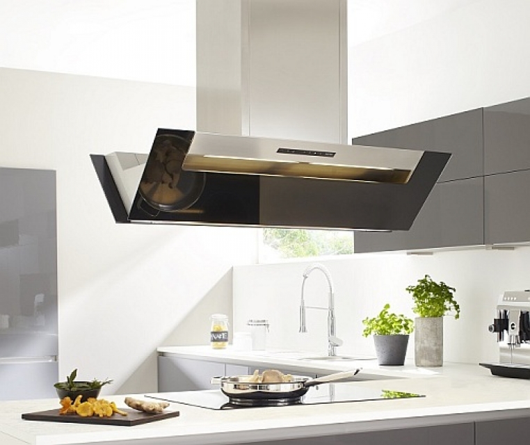Eckig und kantig, so präsentiert sich die neue Inselhaube Ergoline. Mit dem ergonomischen Korpusdesign bietet sie optimale Kopffreiheit. Dazu ist sie noch extrem leise und energiesparend Dank des neuen EC-Lüftermotors.