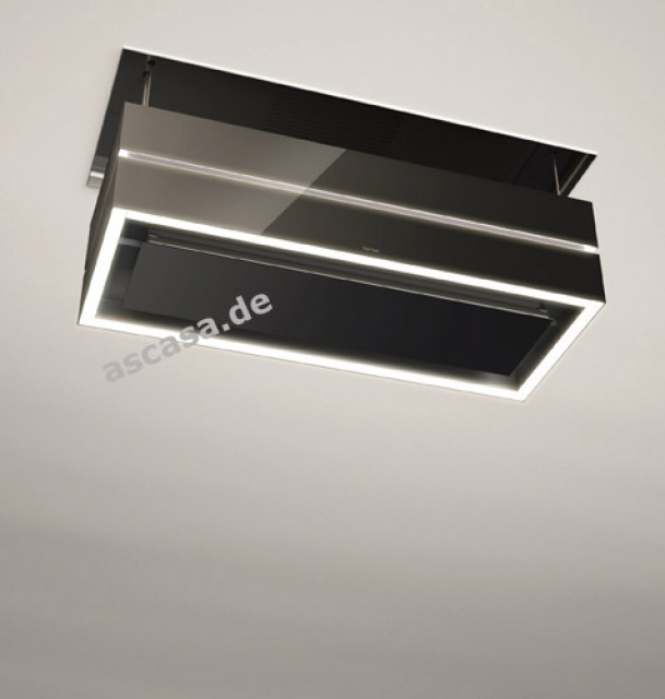 Ein Deckenanschluss mit Glasverkleidung und Moodlight, die Möglichkeit die Haube über das Smartphone zu steuern, Sonderfarben, unbegrenzte Materialauswahl für die Dekore, Vollversenkbarkeit in der Decke sind nur einige der unzähligen, optionalen Möglichkeiten, die dieses Meisterstück an feinster Technik, „Made in Germany“,zu bieten hat.