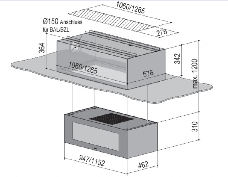 • höchste Dunstwrasenerfassungs-Effizienz mit bis zu 1.200 mm statt wie bisher 800 mm Liftfunktion und somit immer optimalem Abstand zum Kochfeld