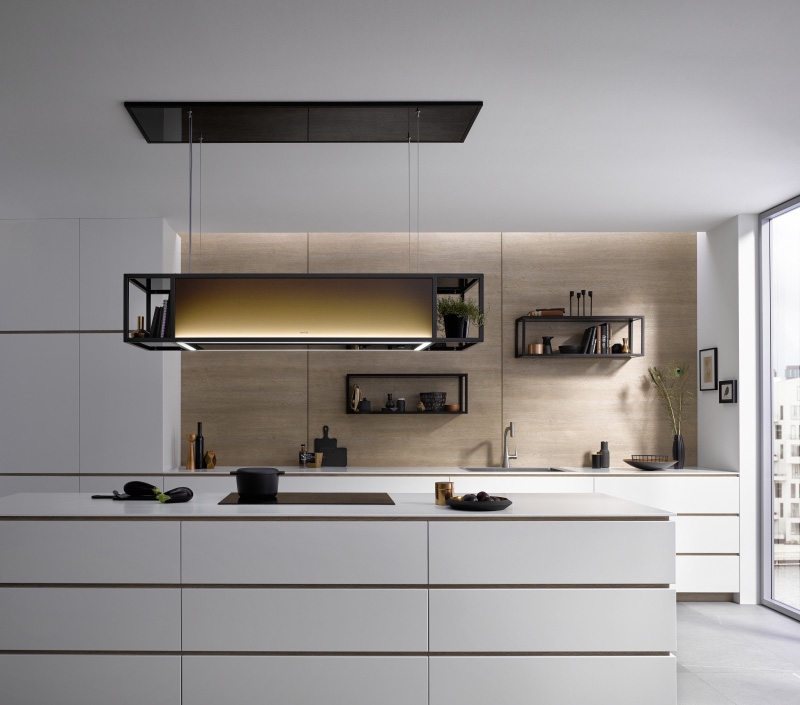 effektiv, besonders leise und dauerhaft. Modernste LED-Technologie sorgt für eine optimale sowie blendfreie Ausleuchtung des Kochfeldes und lässt sich mit der serienmäßigen Lichttemperaturkontrolle (LTC) auf die gewünschte Lichtfarbe einstellen. Mit der getrennt schaltbaren, großflächigen Effektbeleuchtung, die den Raum in ein angenehmes Licht hüllt, ist die Skyline gleichzeitig ein modernes Leuchtobjekt. Ein Deckenanschluss mit Glasverkleidung und Moodlight, die Möglichkeit die Haube über das Smartphone zu steuern, Sonderfarben sind nur einige der unzähligen, optionalen Möglichkeiten, die dieses Meisterstück aus dem Hause berbel an feinster Technik, „Made in Germany“, zu bieten hat.