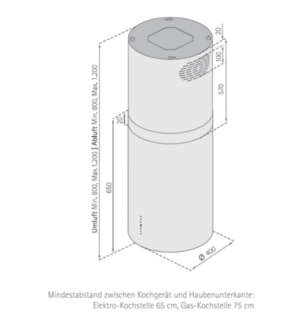 - Min./Max. Normalbetrieb 47/61 dB(A), Boost 70 dB(A)