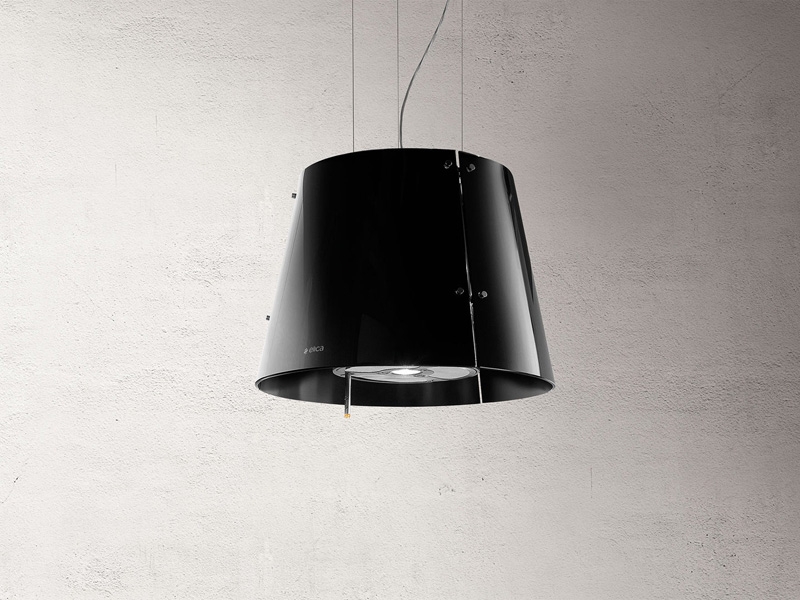 Elica Grace BL F/51 Insel Haube, Edelstahl und Glas schwarz, 51 cm, Umluftbetrieb, Fernbedienung optional, LED-Beleuchtung, Magic-Wand-Bedienung, PRF0010393 C
