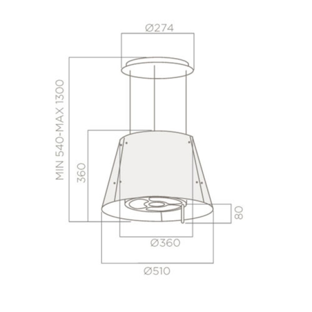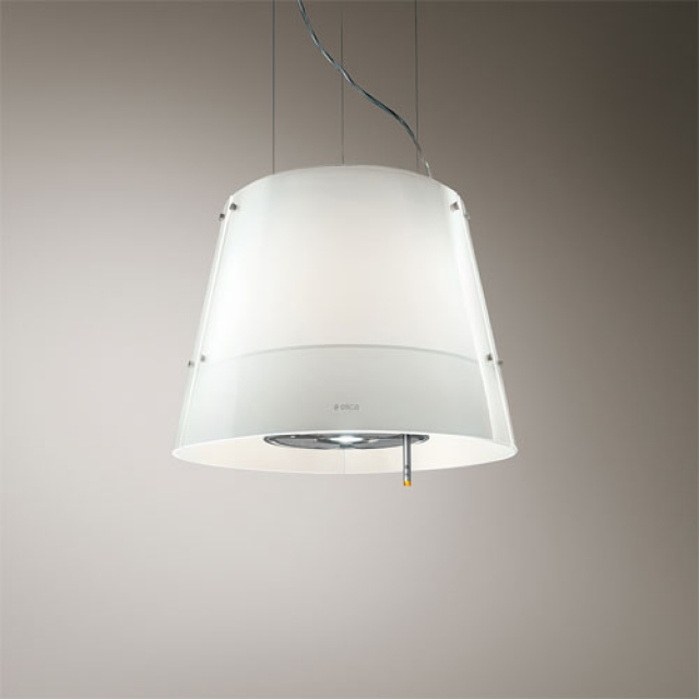 Elica Grace WH F/51 Insel Haube, Edelstahl und Glas weiss, 51 cm, Umluftbetrieb, Fernbedienung optional, LED-Beleuchtung, Magic-Wand-Bedienung, 65414586 A