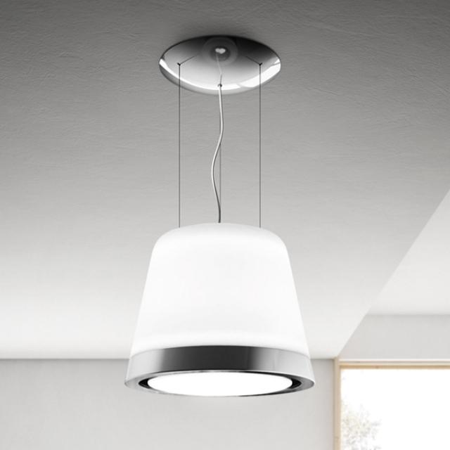 Elica Summilux IX/F/50 Inselhaube, Glas Weiß und Chrom, 50 cm, Umluftbetrieb, Fernbedienung, LED-Beleuchtung, TouchControl-Bedienung, Revolution Filter optional, PRF0116538A
