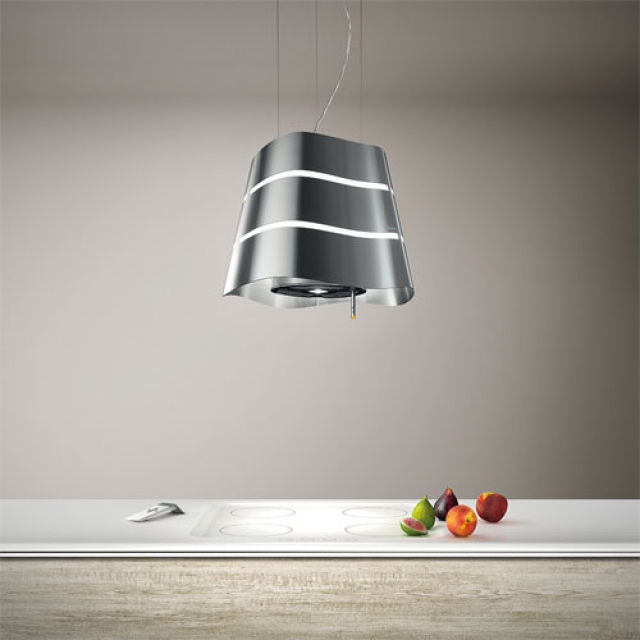 Elica Wave IX F/51 Insel Haube, Edelstahl, 51 cm, Umluftbetrieb, Fernbedienung optional, LED--Beleuchtung, Magic-Wand-Bedienung, 65414588 A