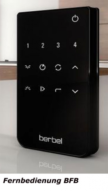 berbel Abzugshauben sind kompatibel mit der Fernbedienung BFB. Bei manchen berbel Abzugshauben ist eine Nachrüstung notwendig. Eine Nachrüstung erfordert Serviceeinsatz bzw. Umbau der Haubensteuerung.