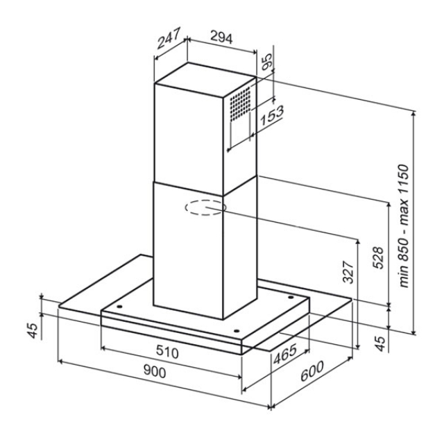 Der Luftausgang befindet sich oben auf der Haube, im Umluftbetrieb werden wie gewohnt Aktivkohlefilter verwendet. Im Abluftbetrieb wird die Abluftführung mit einem ästhetischen Kaminkit verdeckt. Rückwärtiger Abluftausgang: Im Abluftbetrieb kann die Haube so eingerichtet werden, dass die Abluft direkt nach hinten aus der Haube geleitet wird. So kann die Haube direkt auf eine vorhandene Abluftöffnung in der Küchenwand aufgesetzt werden, die Verwendung ästhetischer Kaminkits kann damit entfallen.