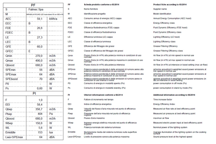 In der Mirabilia-Serie, werden Dunsthauben dekorativ und multifunktional mit den Eigenschaften des Lichts, ohne dabei die Effizienz einer Haube zu beeinträchtigen, hervorgehoben. Entwickelt, um Licht, Glas und Stahl miteinander zu verschmelzen. Zu dem bestehenden Angebot mit Glüh- und Halogenlampen wird die neue Mirabilia mit LED Beleuchtung hinzugefügt. Die LED-Leuchten werden sowohl als Kochfeld Beleuchtung, sowie für die Umfeldbeleuchtung verwendet. Der Vorteil dieser neuen Technologie ist eine fast vollständige Beseitigung des Stromverbrauchs für Lichtquellen. Darüber hinaus wird durch die weißen LEDs die “Reinheit des Glases”verbessert, was für einen angenehmen und modernen Effekt sorgt.