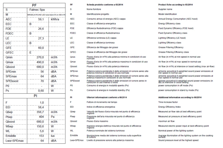 In der Mirabilia-Serie, werden Dunsthauben dekorativ und multifunktional mit den Eigenschaften des Lichts, ohne dabei die Effizienz einer Haube zu beeinträchtigen, hervorgehoben. Entwickelt, um Licht, Glas und Stahl miteinander zu verschmelzen. Zu dem bestehenden Angebot mit Glüh- und Halogenlampen wird die neue Mirabilia mit LED Beleuchtung hinzugefügt. Die LED-Leuchten werden sowohl als Kochfeld Beleuchtung, sowie für die Umfeldbeleuchtung verwendet. Der Vorteil dieser neuen Technologie ist eine fast vollständige Beseitigung des Stromverbrauchs für Lichtquellen. Darüber hinaus wird durch die weißen LEDs die “Reinheit des Glases”verbessert, was für einen angenehmen und modernen Effekt sorgt.