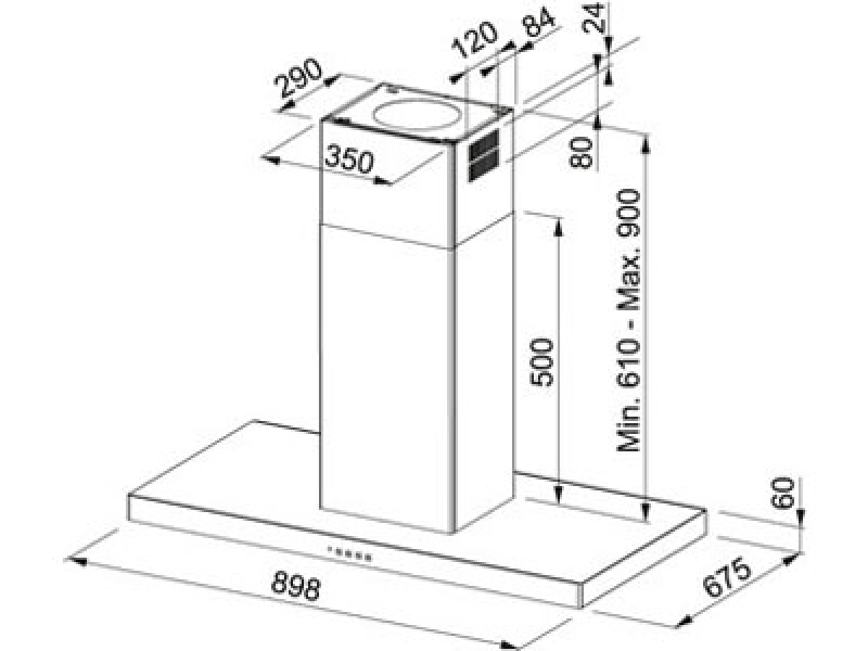 - Sicherheitsabstand zwischen Unterkante Haube und Kochfeld: 650 mm